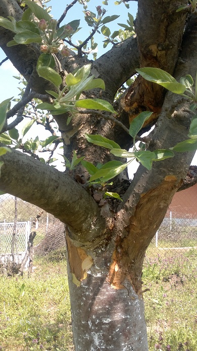 Otsekao sam bolesne grane i skinuo bolesnu koru i drvenasti deo koi je bio bilestan ispod kore.Namazao sam stabla mesavinom kravlje balege,zemlje i kreca.......pa sta bude bice....:(