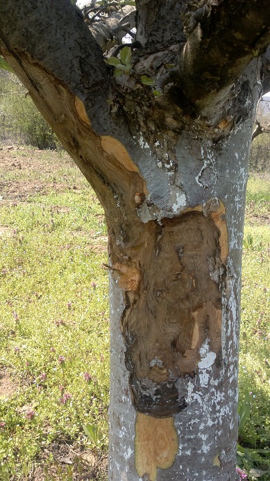 Otsekao sam bolesne grane i skinuo bolesnu koru i drvenasti deo koi je bio bilestan ispod kore.Namazao sam stabla mesavinom kravlje balege,zemlje i kreca.......pa sta bude bice....:(