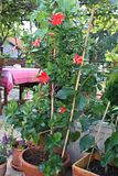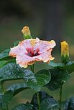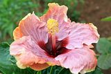 Prelepi hibi Rico - pre podne vuče na rozikasto, a popodne i sutradan ima fantastičnu drapkastu boju, koju je skoro nemoguće uhvatiti. Pupoljak su mu izgrickali (valjda) skakavci, tako da je puno manji nego što bi trebalo, ali lepota mu apsolutno ne manjka