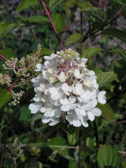 moja prva paniculata vanille fraise pocinje da cveta belo a onda polako prelazi u roze kako sezona odmice  . ono sto je lepo na njoj su crvene grane, tako da i bez cvetova lepo izgleda.