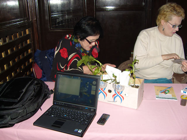 Nigde cveca na fotkama sa izlozbe, izlagaci otisli zbog kise i vetra i bas je bilo tuzno bez sarenisa, zelenisa na koji smo navikli. Ali kao i uvek najvaznije je bilo da smo se videli,caskali, razmenjivali iskustva, semenke i ostali materijal. Nado hvala za mindjusicu i ostala je na stolu tvoja mandarina i Itan je ponudi: Ko hoce, ja rekoh prva ali Mary Jo je ipak uze iako nije kalemljena, ona je bolji strucnjak za to. Mimar hvala na" belim bozurcima, olianderu,mindjusicama" , Manuse tebi posebno hvala za paprice i paradajz /koji je cula sam fenomenalan/ i cd. Opet nam ostaje tuga sto ne popricasmo jos. Lidija iako bolna hvala na obecanoh brrunfelsiji. Joj ne secam se vise ali znam da je semenja bilo na pretek/uzela sam ljubicastu daturu/ i da si Mary Jo nasla jos ponesto za tvoju bastu.