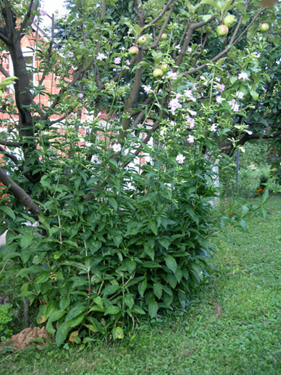 Evo moje Saponarie. Ove je godine, s cvjetom, preko metra visoka. Dugo je odoljevala kiši, no ipak ju je polegla pa smo ju jednostavno vezali uokolo da bi ostala uspravna. Na slici mi nekak ne dolazi jo izražaja li je jako lijepa i gusta. Naravno, prekrasno miriši, a tek je krenula s cvatnjom