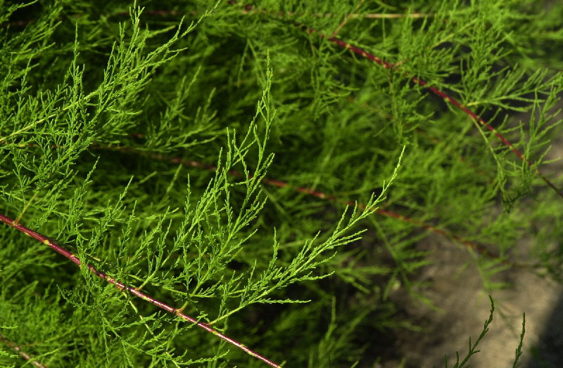 Bastenska dekorativna, drvenasta biljka koju odlikuju duge tanke grane, sa veoma sitnim i neznim listovima. Cveta sitnim mnogobrojnim ruzicastim cvetovima po celoj biljci, tako da u vreme cvetanja, maj mesec, biljka izgleda kao prozirni ruzicasti oblak. Tamarix se veoma dobro prilagodjava svim tipovima zemljista, odlicno podnosi susu i niske temperature. Voli suncane strane dvorista. I ako izgleda nezno, veoma je otporna i tolerantna vrsta. U nekim literaturama sam pronasao podatak da je medonosna biljka i da je pcele obozavaju u vreme cvetanja. Odlicno podnosi orezivanje, sto omogucava da je oblikujete i usmeravate njen i onako brz rast. Moze se saditi pojedinacno i u grupi kao “biljna ograda”, a veoma cesto se nadje i kao dopuna buketa.