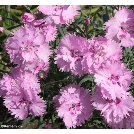 Sadnica .Ova vrsta a spada u niske vrste koje se sade po ivicama i obodima cvetnih .Listovi su srebrne boje ,uzani i zasiljeni na vrhu ,zbijeni su i prizemnog rasta visine do 10 cm .Vole suncan polozaj i sire se jastucasto .Cvetaju u aprilu i maju roze duplim cvetovima koji pri tome i jako mirisu .Cvetna drska moze biti visine oko 20 cm .Biljka je sasadjena u kontejner .