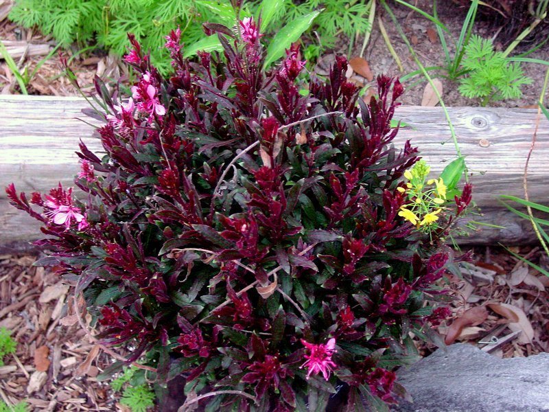 Sadnica , ova vrsta perene moze da naraste od 50 do 100 cm . Listovi su niski , izduzeni , prizemni do 20 cm dok je cvetna drska visoka i do 80 cm .Boja listova je upecatljiva purpurno crvene boje sa primesama zelene .Ako je biljka vise izlozena suncu crvena boja je izrazajnija . Gaura je zahvalna biljka zato sto ima dug period cvetanja od maja do oktobra . Cvetovi su tamno - roze boje . Pogoduje joj suncan polozaj i ocedito mesto . U jesen ( u novembru ) , cvetne drske se skracuju na visinu od 20 cm , ostavljaju se prizemni listovi . Biljka je zasadjena u saksiju precnika 13 cm .